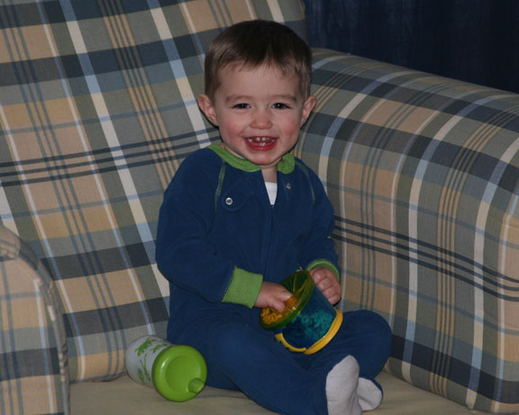 The kids are playing together a lot more - and that's fun to see. However, one unfortunate side effect is that we hear a lot of screaming coming from Liam these days. Usually it's in response to Natalie "mothering" him by trying to pick him up or shuttle him into the position she wants him in. Sometimes it's indignation that he doesn't have the toy he wants or she's taken it away from him. I can imagine it will just be replaced by "No!" and "Back you evil fiend!" in no time.